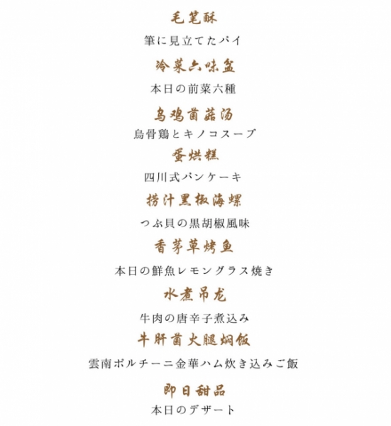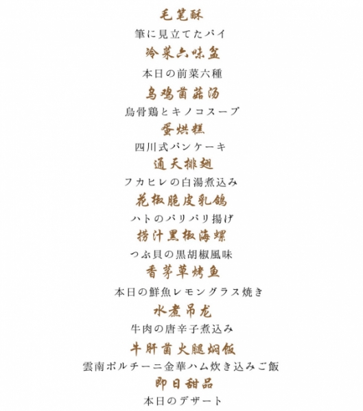 芦屋の中華「四川唐門」 2025年9月コースメニュー