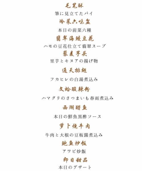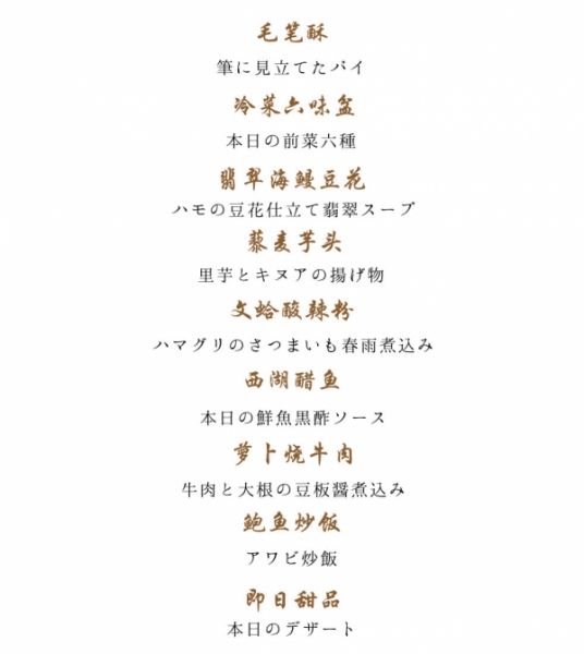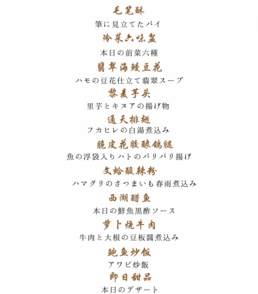 芦屋の中華「四川唐門」 2026年1月コースメニュー